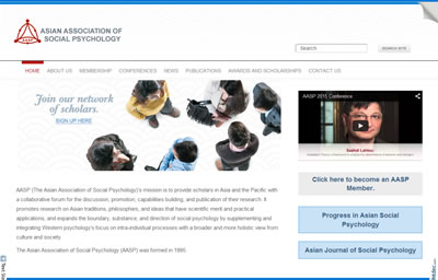 The big news from AASP in February 2015 is the development of the new AASP website at www.asiansocialpsych.org. For years, we have had trouble with membership, because it has been managed through the publisher of Asian Journal of Social Psychology (AJSP). Starting in February, 2015, AASP will be able to handle membership directly, online through our new website. This is a Flightdec.com website that is being purpose built by FRESCO Thinking and Communications. It will have the functionality not only to handle membership (including payment of membership fees), but will have a secure area, where